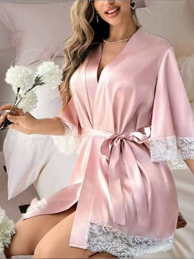 Confectionnée dans un satin léger et brillant, cette robe de chambre offre une sensation de douceur incomparable sur la peau. Sa ceinture à nouer met subtilement en valeur la taille, tandis que les finitions en dentelle au bas et aux manches ajoutent un charme sensuel sans en faire trop. Parfaite pour vos matins cocooning, vos soirées détente ou comme tenue élégante de préparation avant un grand événement.